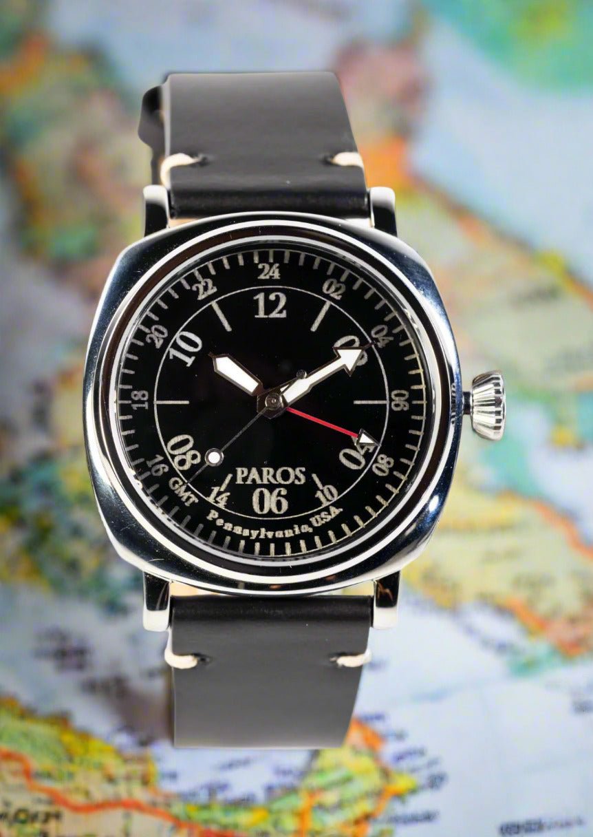 The Transatlantic GMT is our homage to the first transatlantic aerial crossings. The watch is powered by the NH34A GMT movement.